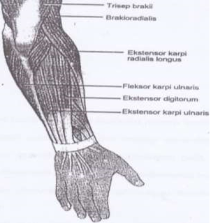 Gambar : 2.14 Otot - Otot Lengan Bawah Kanan Tampak Posterior (Syaifuddin, 2006 : 99)